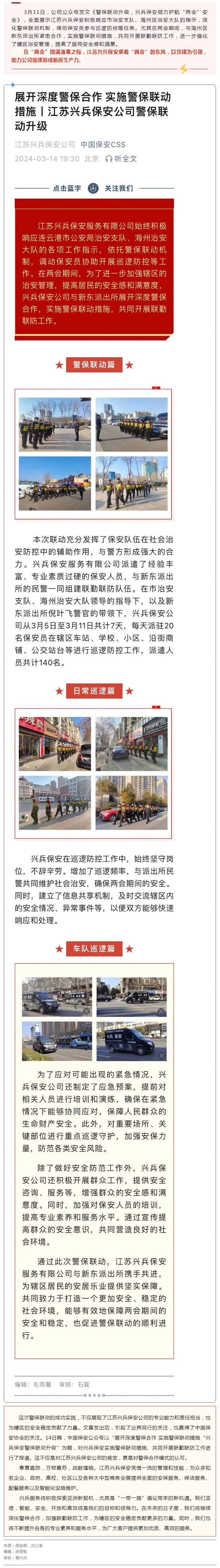警保联动显成效,江苏e77乐彩保安荣登中国保安CSS!